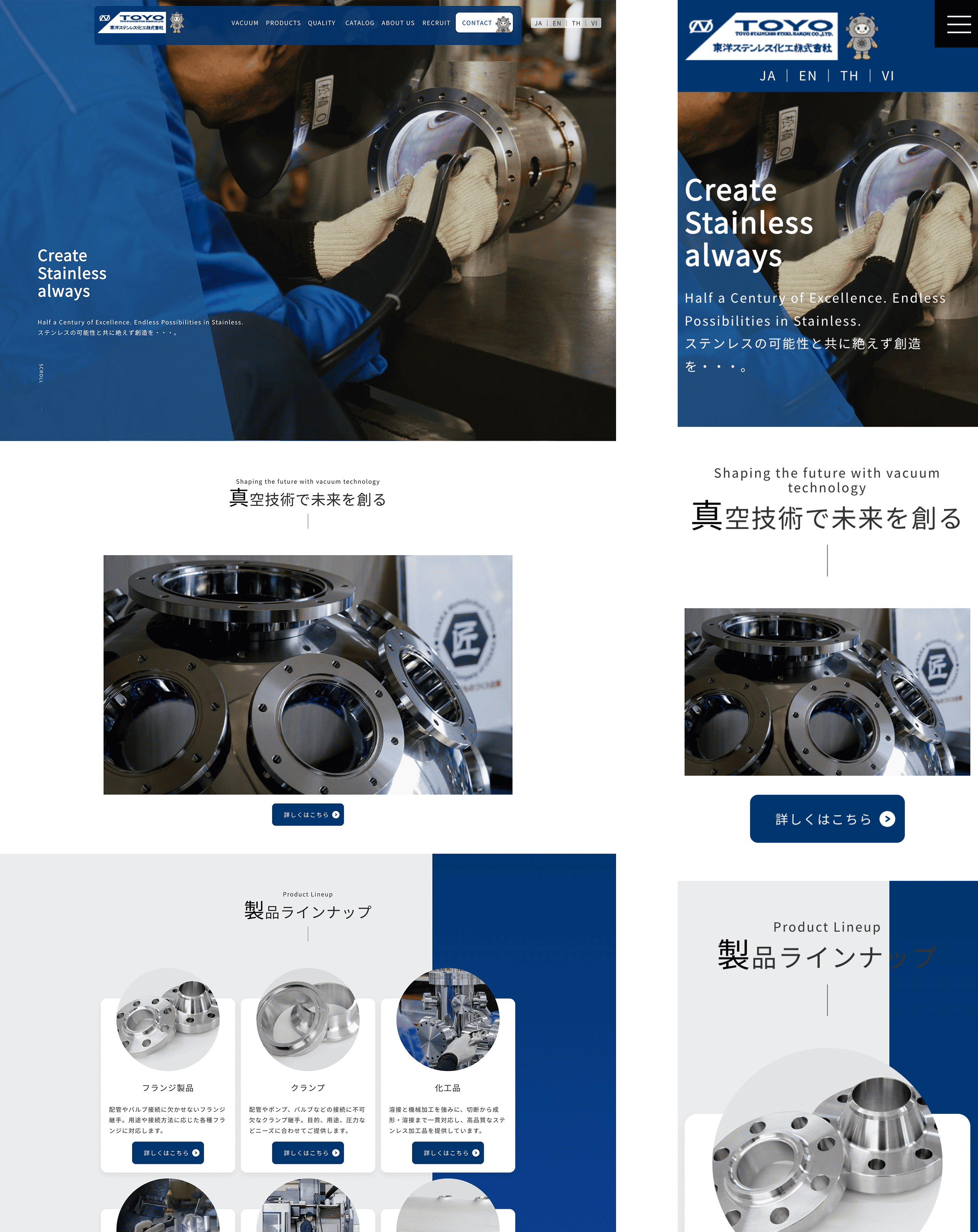 ステンレス加工品や真空関連製品を手がける企業として、技術力・品質・対応領域の広さを分かりやすく整理し、ものづくり企業としての確かな信頼感と、堅実さ・先進性を兼ね備えたコーポレートサイトに仕上げています。