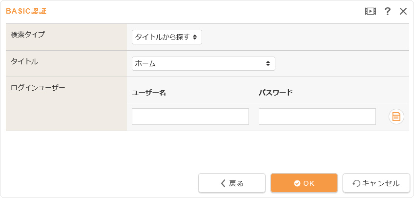 検索タイプを選択し、BASIC認証を設定したいページのタイトルまたはURLをリストから選択します。