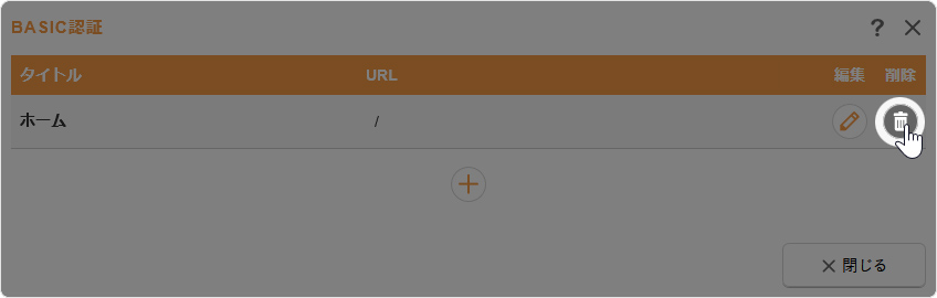 “BASIC認証ダイアログ”が表示されますので、削除したいリストの右にある[削除]ボタン