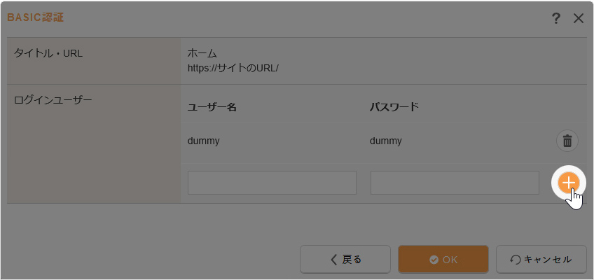設定したBASIC認証にユーザー名とパスワードを追加することができます。