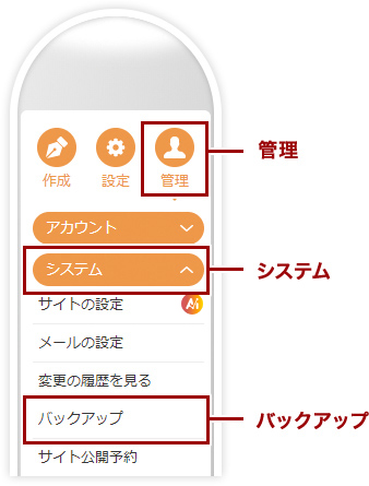 コントロールパネルの[管理] → [システム] → [バックアップ]を選択します。